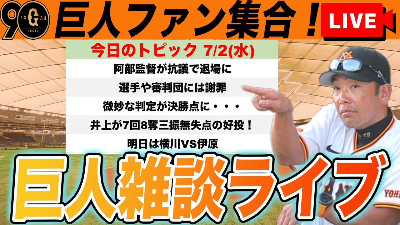 【巨人ファン集合】甲斐はタッチしたと証言!阿部監督退場!悔しいけど今日のポジ要素振り返って切り替えよう雑談 読売ジャイアンツ