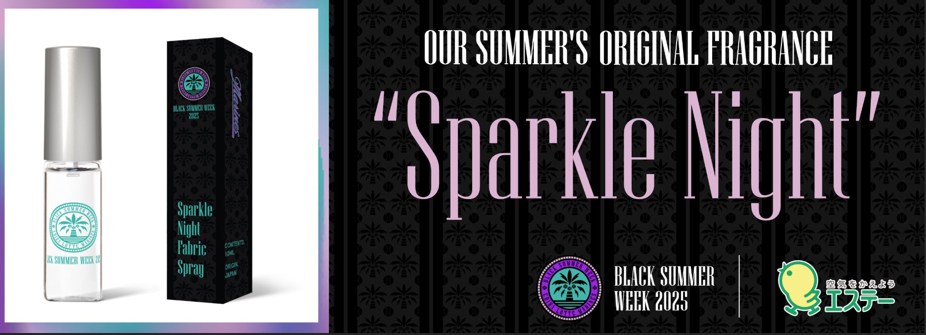 エステー株式会社(以下、「エステー」)は、プロ野球チームの千葉ロッテマリーンズとのコラボレーションにより、「BLACK SUMMER WEEK 2025」のコンセプトをもとにしたオリジナルフレグランス「Sparkle Night(スパークル ナイト)」をエステー100%子会社の株式会社コードミーの技術を活用して創香しました。