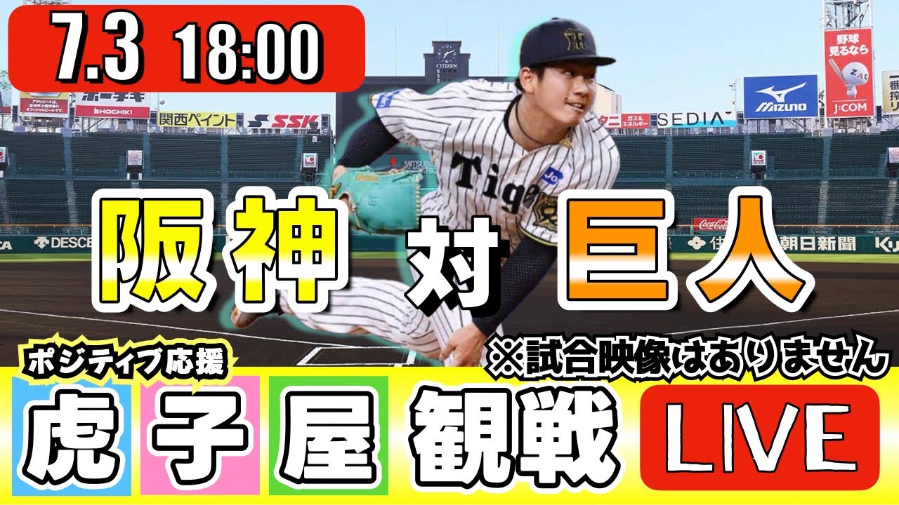 【全力応援 阪神ライブ】7/3 阪神タイガース 対 読売ジャイアンツ の公式戦を阪神ファン夫婦が皆さんと一緒に観戦・応援するLIVE配信です。 先発予想:(阪神)伊原陵人 (巨人)横川凱