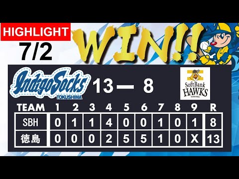 【ハイライト】徳島インディゴソックスvs福岡ソフトバンクホークス(3軍)【2025年7月2日(水)】