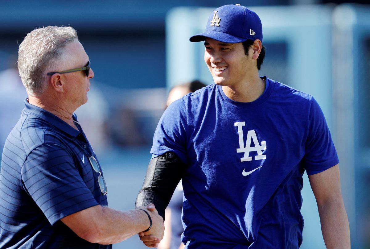 大谷翔平選手が元エンゼルス監督のネビン氏と再会し、言葉を交わしました。