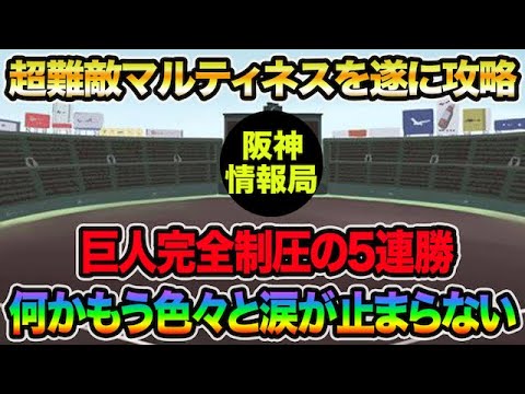 【巨人完全制圧の5連勝】超難敵マルティネス攻略で何かもう色々と涙が止まらない.. 遂に2位と5G差に広がった件について【阪神タイガース】