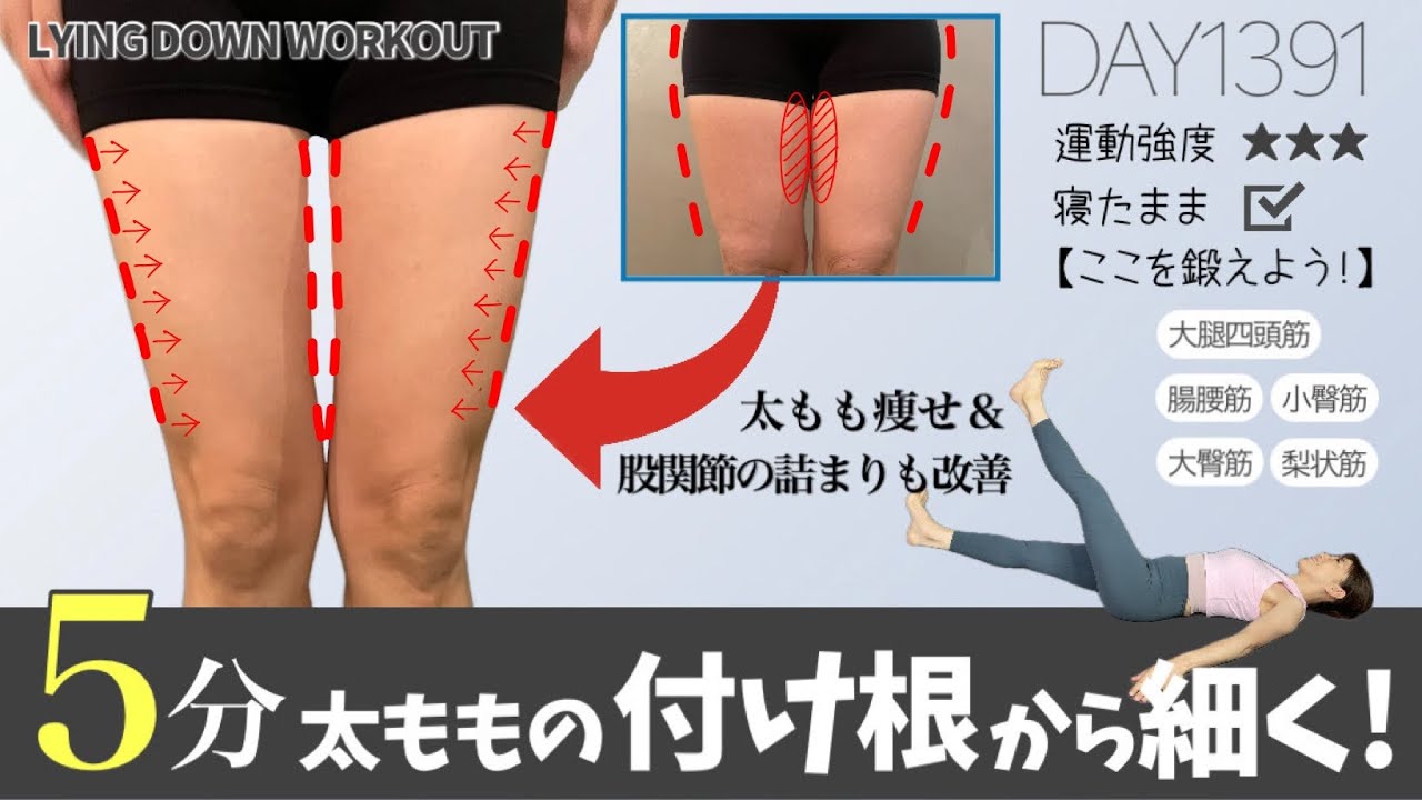 【寝たままOK】内転筋•腸腰筋を鍛えて太ももを綺麗に引き締める!股関節の詰まりも解消5分|DAY1391 5 minute Lean Inner Thigh |Lying Down Workout