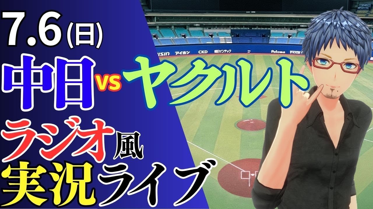 【ドラゴンズ応援配信】7/6(日)東京ヤクルトスワローズ対中日ドラゴンズのプロ野球観戦ライブ