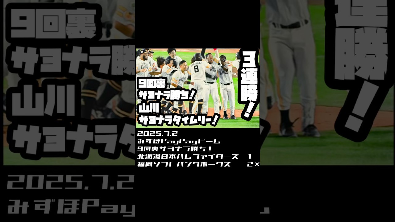 3連勝!9回裏山川逆転サヨナラタイムリー! 2025.7.2 #sbhawks