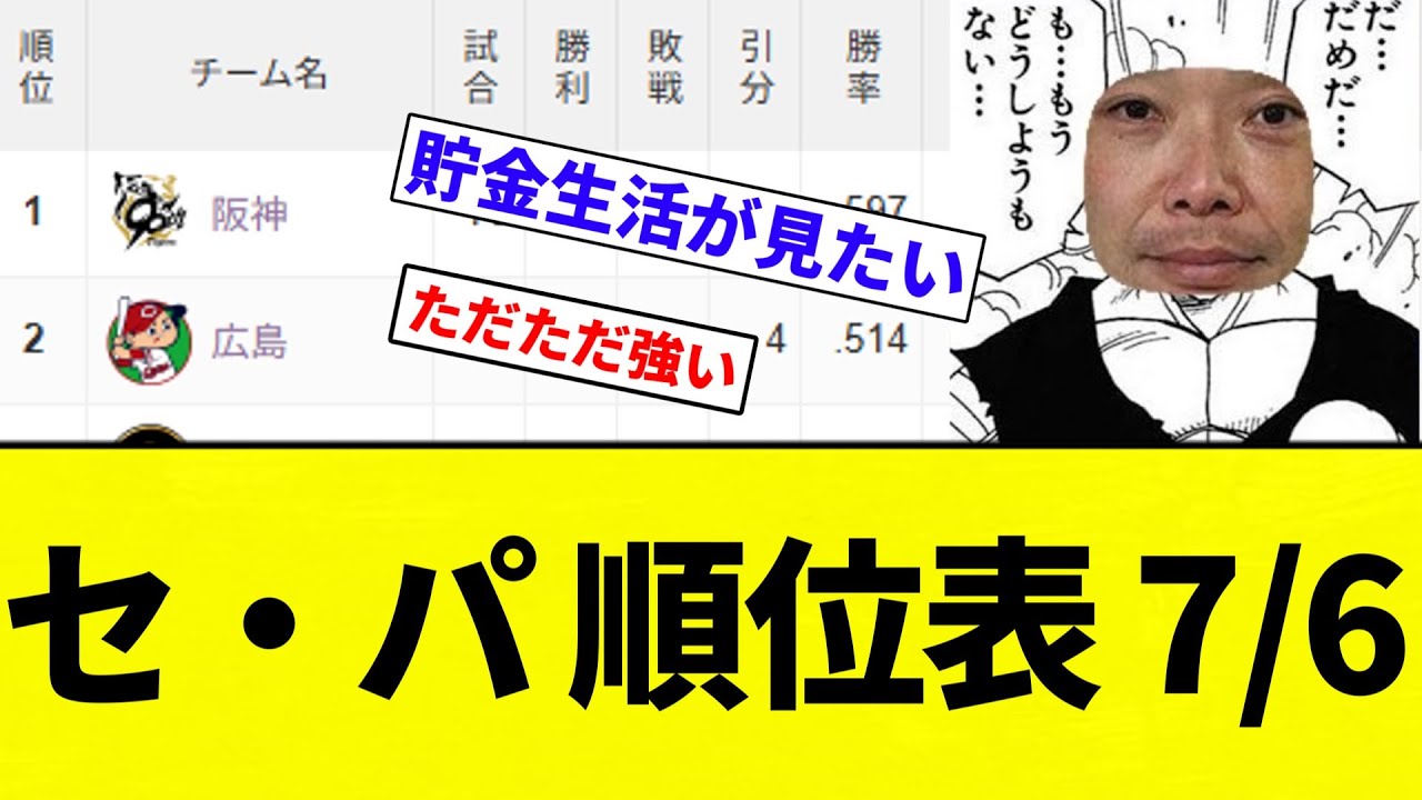 【順位表】セ・パ 順位表 7/6【プロ野球反応集】【2chスレ】【なんG】