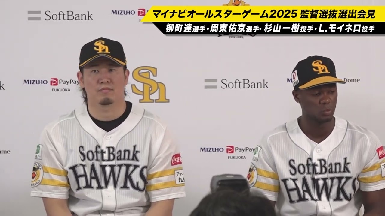 #マイナビオールスターゲーム2025 の監督選抜選手が発表され、ホークスからは #柳町達 選手 #周東佑京 選手 #杉山一樹 投手 #モイネロ 投手が選ばれました。1997年生まれの柳町選手と杉山投手はともに初出場となりました!