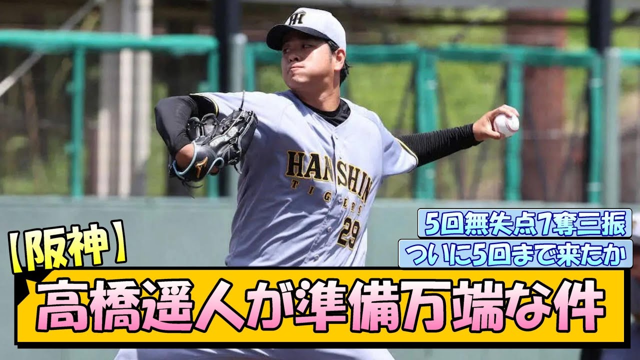 [音楽] 阪神高橋が準備万タな剣。 術後最長5回無失点で7脱三振の後等 2人ずつ増やしていってついに 5回まで来たか。 平谷軍監督7個三振って5回0 で粘って抑えてる。普通ならオッケーなんだけど。 全然問題ないんだけどまだまだ春とは良くなるっちゅうことよ。 昨日の春とは急速が最高 148くらいやったんよな。 この前の151 出てた日に比べたらそんなに良いとは感じなかったのは確かにそう。 正直今先発陣人ガチガチだから外す投いないのが難しいところ。 [音楽] [拍手] 逆に言えばハルトは焦らず万全の状態で戻ってきてもらえる。 8 月中旬以降の勝負どころではハルトの力が必ず必要になる。 焦らず無理せず体を壊さないことを第 1に調整進めてくれたらそれでええ。 もう1 軍で投げるのも病読みになってきたかもな。これからも何の面白いすれを取り上げていくのでコメント、チャンネル登録、高評価よろしくお願いします。 [音楽] [拍手] [音楽] う。