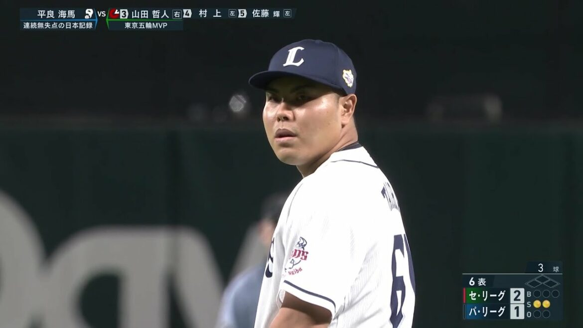 6回表、パ・リーグ6番手登板・平良海馬(西武)が圧巻のピッチング! 山田哲人(ヤクルト)、大山悠輔(阪神)から空振り三振を奪う!