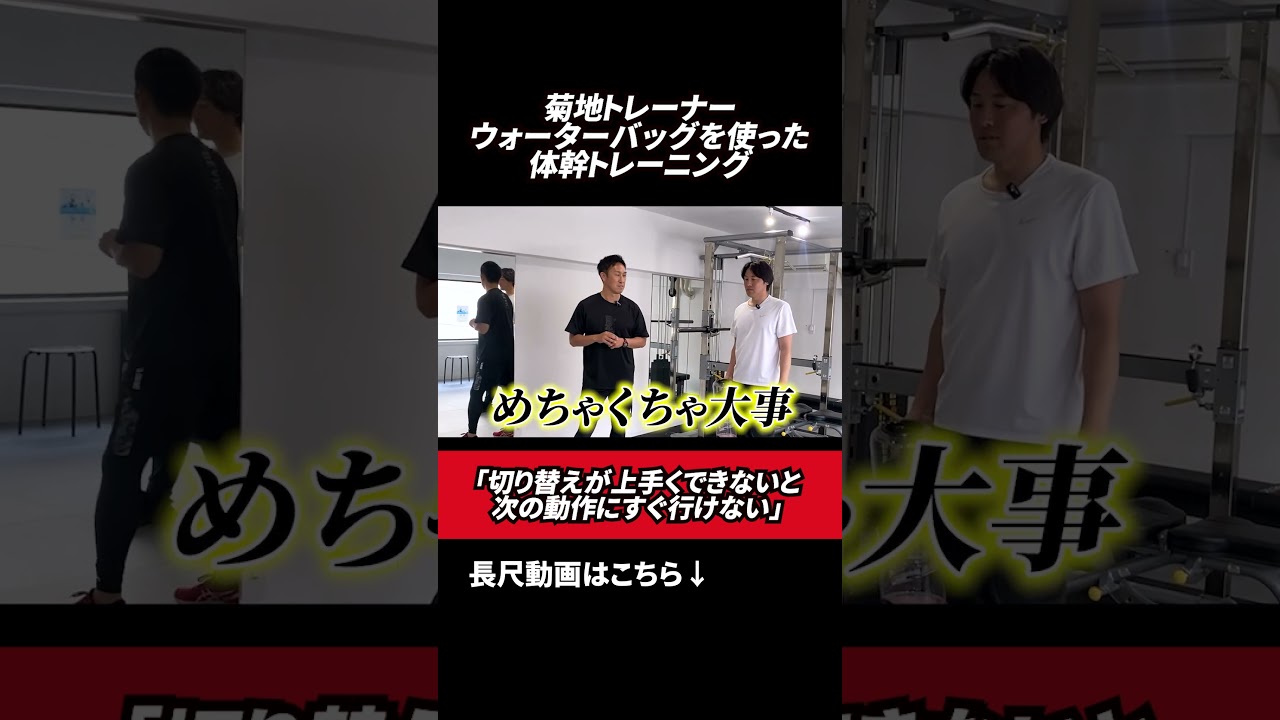 ちょっと実際の動きの中でこれを使ってトレーニングをしてみたいと思います。 変えてもらって、 少し重心を落としてもらってで、この状態で 2ステップ 横に置っから はい。12 でここでしっかり止まりましょう。 はい。 121212 これを連続で はい。 やってみましょう。 はい。 前回よりもちょっと動きが多くなるって感じですかね。 そうだね。 こな間だよりもより動きが素早くなったりとかするので、一瞬で軸を作る。やってみましょう。 10 回。はい。 そうです。体の軸を保って。そう。頭の位置がぶれない。 はい。 そう。そう。体傾かないように。あ、オッケー、オッケー、オッケー、オッケー。どうですか?いいね。上手、上手。 それはね、それはね。はい。 ね、この横の動きってすごく大事だよね。 めちゃくちゃ大事です。はい。なんて言うんですかね?切り替えがやっぱりこうまくできないと 次の動作にすぐいけないんで。 そうだよね。 やっぱりそういうのも自分のこの重心軸っていうのをすごく意識しないとどうしてもこう うん。 ね。 そうだね。 向こうに流れてしまうと次の1 本目遅くなってしまうんで、ま、野球でも切り返し動作ってすごく多いスポーツなんで。 そうだね。 うん。そう、 必要になるかなって うん。 思ってます。ちょっとはい。生き切りしてます。はい。 持たないでやってももちろんできんだけど、持つと本当に下半身と体感とこう一緒に使う ていう感覚が出てくるので、特にこの横の動作は予で、ちょっとこれもぜひやってみてほしい。 Ja.