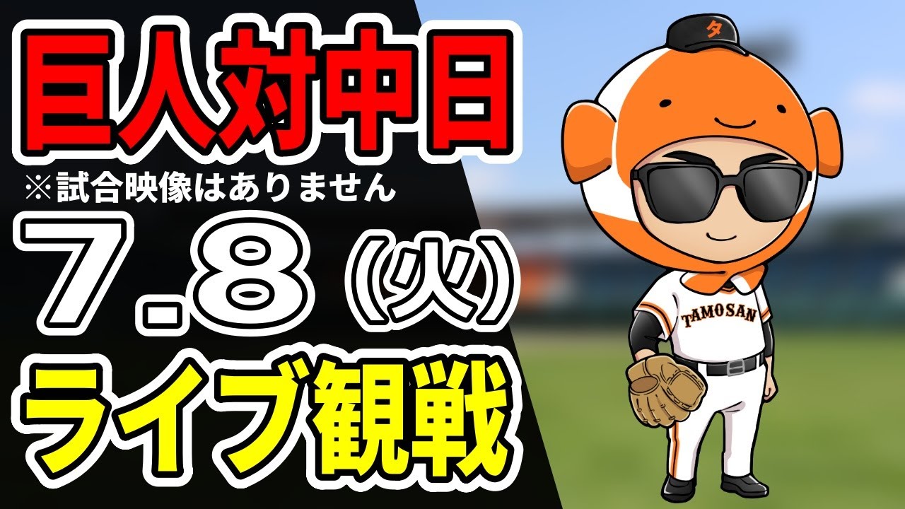 【巨人ライブ】7/8 巨人 対 中日ドラゴンズをみんなで応援するライブ!巨人戦を生配信中!!#読売ジャイアンツ #中日ライブ