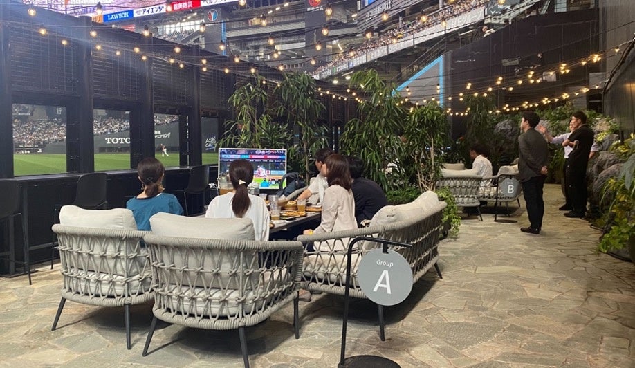 バッターズアイラウンジでの試合観戦交流の様子