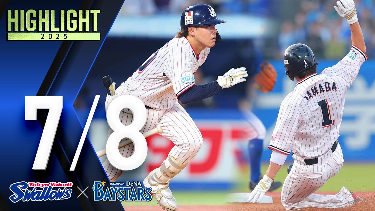 【スワローズ活躍シーン】山田哲人選手、ヒット&ファインプレー&今季初盗塁&赤羽由紘選手、マルチ安打 7月8日 東京ヤクルトスワローズvs横浜DeNAベイスターズ(神宮球場)