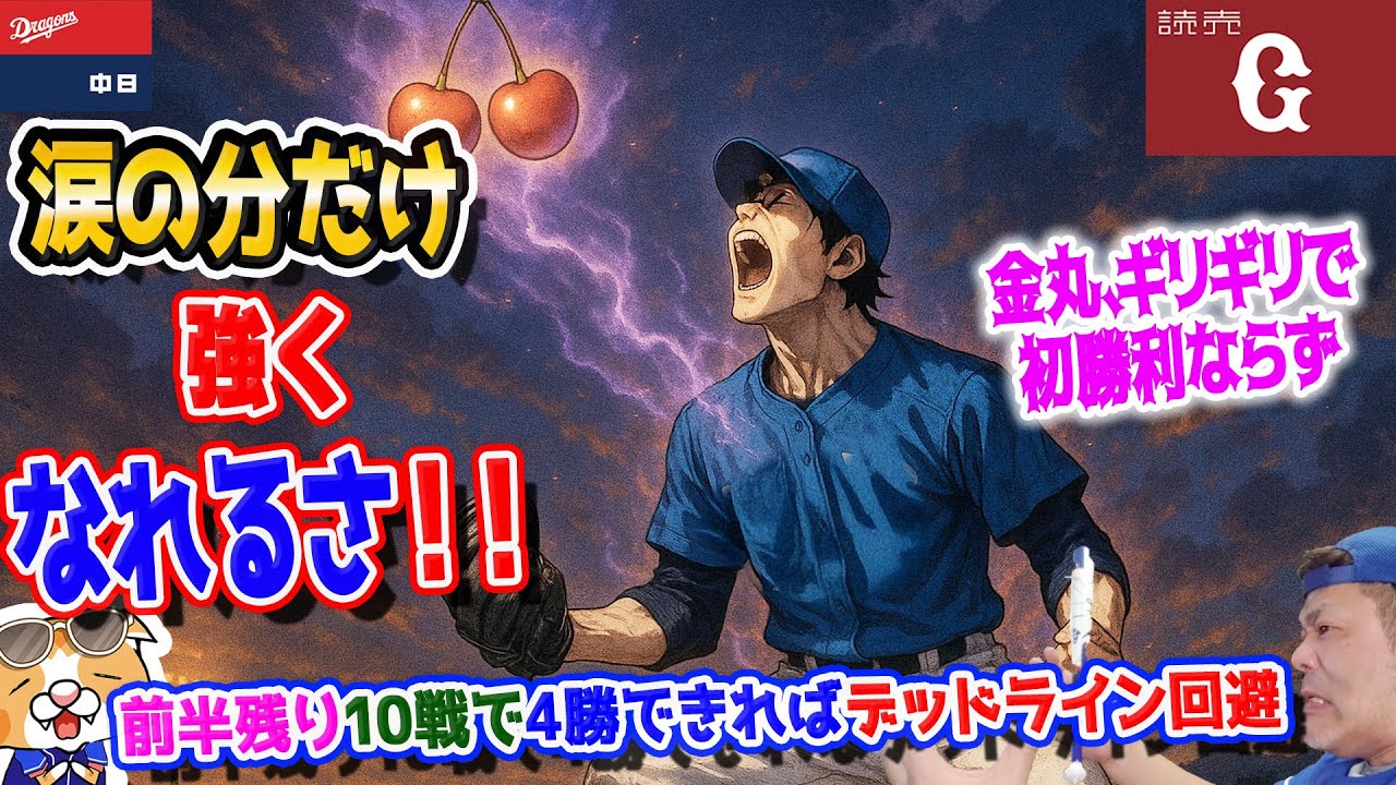 さすがに さすがに今日はね、勝ったと思ったよ。 さすがにさすがにね。 さすがに今日はすげえや。 本とさ、ちょっともうさあ、 こんばんは。ちょっと今日警戒警報だよ。 もう これダめだ。さすがにさすがにこれは まずいでしょ。あの清水君がどこじゃない よね。も これはね、 ドラゴンズ 色々燃えるな、これは。これは燃えるわ。 ちょっとね、 さすがに笑う。笑うしかないよ。なんか 笑えないんだけどさ、これはさすがに なんかもうシナリオがあったのかって感じ だよね。 うん。 そう。芸術点。そうだよね。あさん芸術点 高すぎるわ、これは。これはさすがに芸術 点高いわ。さすがに感じねえよ、これ だってさ、まあちょっといつもいつも ちょっといつも自分ね、僕もライブ微妙に 遅れて申し訳ないんですけど、あの、作っ てんすよ。最後の7回、8回、9回ぐらい になったらもう間に合わなくなるから サムネとか作り始めたりあのデータとかね 、もうまとめなきゃって感じで作ってん ですよ。 で、さすがに今日は2点差になって、まあ ね、考えてみたら高々2点差だからそりゃ そうなんだけど さすがにね、この展開は勝ちに来る流れだ よなと思ったよ、これは。 うん。 これはまいったなあ。 おこえ君だよな。そう考えると。そう 考えるとさ、おこえ君のあのプレイだよね 。 山本君だよね、あれ。確か山本君のもう 絶対抜けたって当たりみたいな感じなの。 君がすげえ配送してすげえ手伸ばして本当 ギリギリ取ったじゃん。あれだよね。 あれで試合の流れが動いたというかあれが 土俵は残っちゃったってことだよね。巨人 があれだって抜けてりゃだって何点何点 って感じだもんね。 いやあ 逆だったら面白いんだけどね。逆だったら 巨人ファン今おしれえだろうな。巨人 ファンの方も見てるかもしんないですけど おめでとうございます。それはそれはそれ は面白かったでしょうね。面白最後ね。お めでとうございますとは思うけど金丸る君 だから巨人ファンもちょっとあね、 ちょっと苦い部分はあるでしょうね。全 日本のエースになりそうな金丸君だからさ 。うん。ま、とはいえ巨人もね、まあまあ なんつうかな、乗っていけないというか。 ああ。これは決定だなあ。 これはびっくりしたわ。 はあ。皆さんご注意ください。ちょっと あれだよ。いつものいつものあれでさ、 なんとかなんとかこう放送禁止用語とか やめてくださいよね。 僕がそれを止めないと僕が除長してること になるんでやめてくださいよ。僕がそれは banしますからね。こういう展開の時は ね。 いや、さすがにそれにしてもね、さすがに 今日はね、まったよね。これはさすがにか 、これ金丸君のああ、 金丸君にね、何を言えばいいのかわからの 分からぬのですが ドラゴンズのエースタルヤこね、もう10 年これをやらなければいけないという覚悟 で行きましょう。 10年は必要ねえよ。FAするから ポスティングするからって思ってる。 そうだね。 アンド、アンド13。そうだね。ここ5年 でもワーストって言えるかもね。 ここ5年でも記憶に残る負けだな、これは 。 どうすりゃいい? どうすりゃいいっていうかな? まあもう不あれだよね。ドラゴンズの 井上龍のあれがないってことだよ。もう なんつうかその 節めが ちょっと最近流れがそうだったじゃん。 ちょっとこれは 味方がいなくなるわな。別に明確な今日ね 。ま、ちょっとまたあれやったけどね。 また満塁スクイーズみたいなのやったけど さ。そう。ああいうのが呼んじゃうのかな 。ああいうのが呼んじゃうのかな。 やったよな。そういえば神様が怒ってんの かな。 あー。 はい。まあ まあまあね。ま、行きましょうか。まあ 行きましょうか。ダメージはちょっと多分 明日の試合の明日の試合の結果が出るまで 多分このダメージは抜けないと思うけど 行きましょうか。これじゃねえや。昨日 もうさ、資料全部作り直したから今日最後 ごめんなさいね。もうこれ絶対こういう 展開ひっくり返えると思わなかったからさ 。金丸る君初勝利とかでサムネ作ってたん だ。ぶっちゃけもう急遽作ったからなんか どっか間違ってたらすいませんね。はい、 行きましょう。でーん。 うん。ギャーってなってますけど。 ぎゃーってなってます。 ぎゃー。 ほら、山形っぽくサらんぼ、サらんぼにし ときました。 金丸る君ギリギリで初処理 ならず。だめ。サムネ見せらんないよ。 見せらんないよって。あれ、あれだけどさ 、だめだよ。そう。それを見せるとなんか 演技も持ってかれると思うよ。うん。 どっか間違今日の資料もどっか間違ってる 気がするからちょっと覚悟してね。僕も ちょっとさすがにか勝つっていう内容で 書いてたから急遽全部変えたからさ。 ちょっと間違ってる可能性はある。あと 順表かけなかったわ。あまりにもちょっと あれでもう試合終わってんだけどね。全部 今日は横浜とね、阪神が勝って広島と ヤクルトが負けてます。 はあ。 ナビナの分だけ強く