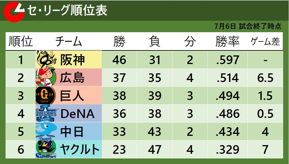 【セ・リーグ順位表】8連勝の阪神が首位独走で貯金「15」 2位広島は3位巨人と1勝1敗1分 中日は借金10にふくらむ|日テレNEWS NNN 日テレNEWS NNN阪神・森下 「チャンスで打てるようにしたい」敵地3連戦でも勝負どころでの一発を狙う(スポニチアネックス) Yahoo!ニュース掛布雅之氏、阪神は昨季までの岡田野球から全く生まれ変わった 藤川監督が前政権の長所引き継ぎながら色出す スポーツ報知【虎になれ】すべてうまくいっているワケでもないけど…阪神、今週にも“セの貯金独占“の可能性 nikkansports.com「もう先制してる!」8連勝中の阪神 光る走塁と好調打線で広島・床田寛樹から幸先良く先制 au Webポータル