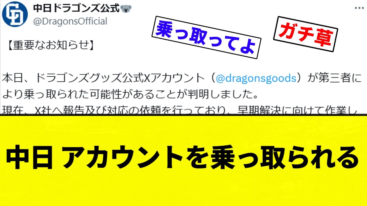 【お笑い】中日 アカウントを乗っ取られる【プロ野球反応集】【2chスレ】【なんG】
