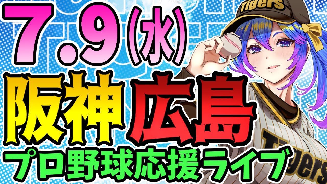 【阪神応援実況】7/9(水)阪神タイガースVS広島東洋カープのプロ野球同時視聴ライブ!阪神ファン、広島ファン歓迎!!!【プロ野球速報/プロ野球ライブ/女性Vtuber】