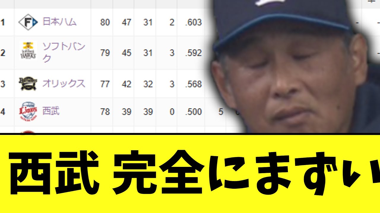 【悲報】西武ライオンズ 2ゲーム差で完全にまずい