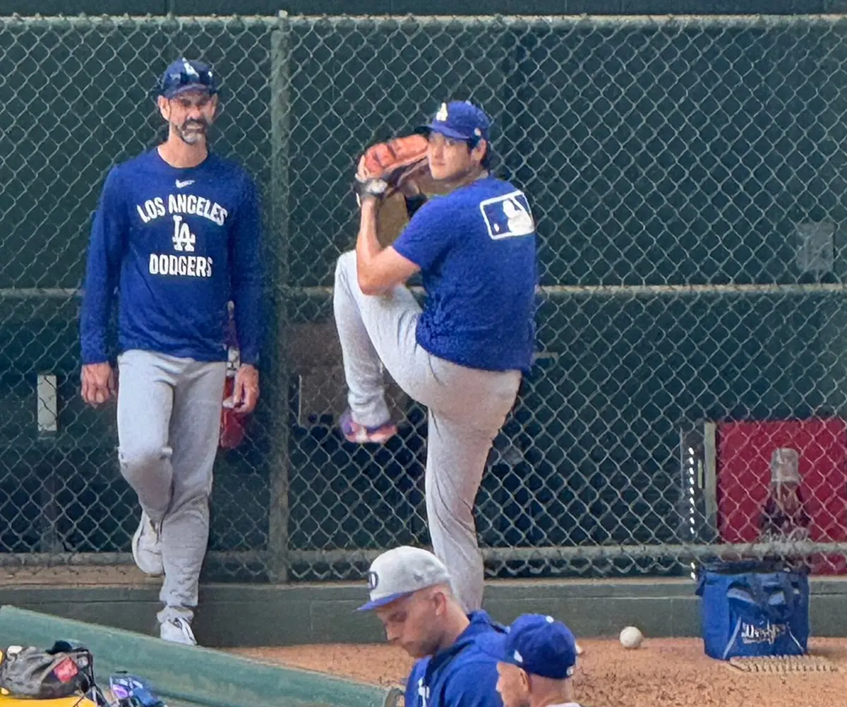 ドジャースの大谷翔平投手(31)が9日(日本時間10日)、敵地ブルワーズ戦前にブルペンで捕手を立たせて1球、座らせて26球を投げ込んだ。