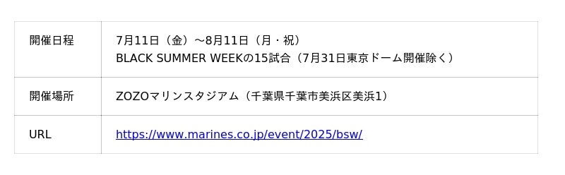 7月11日~8月11日 BLACK SUMMER WEEKの15試合