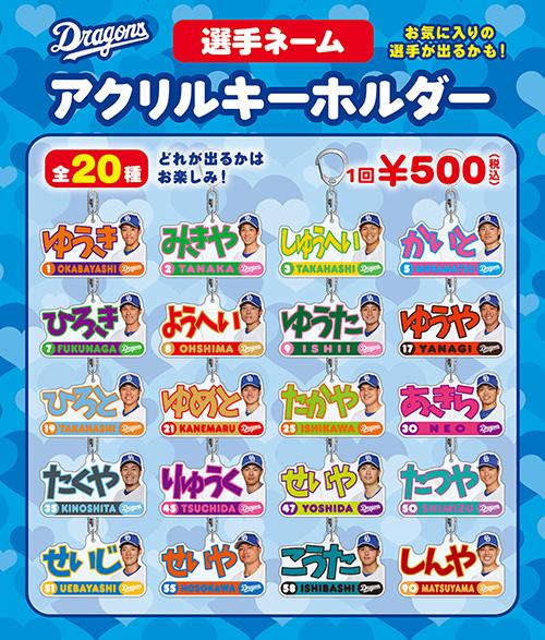 7月11日(金) 広島戦より「選手ネームアクリルキーホルダー」を販売いたします。