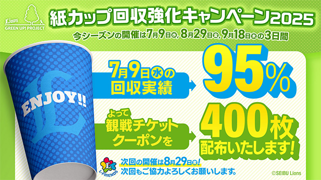 Lions GREEN UP! プロジェクト『紙カップ回収強化キャンペーン2025』
