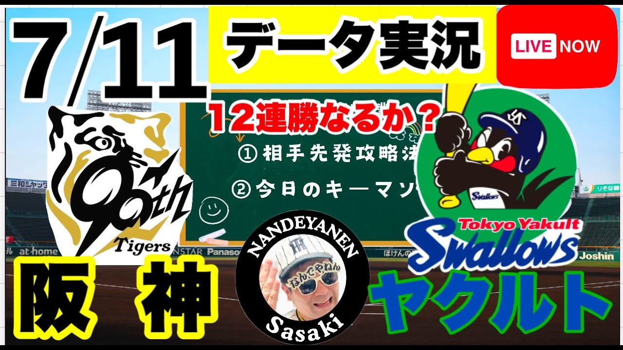【阪神公式戦ライブ】7月11日 阪神vsヤクルト データ実況ライブ あなたの阪神知識と応援を100倍面白くします!#初見大歓迎 #阪神タイガース #阪神 #ヤクルトスワローズ 25/7/11