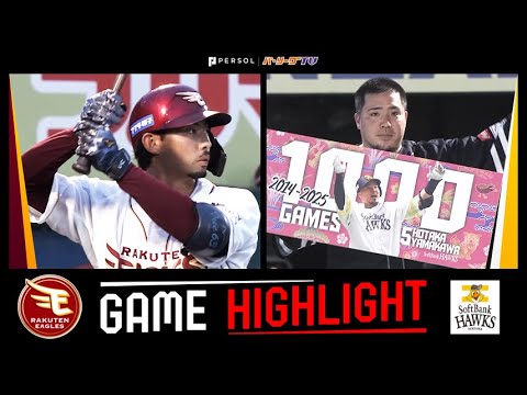 2025年7月11日 イーグルス対ホークス(楽天モバイルパーク)の試合ハイライト動画。