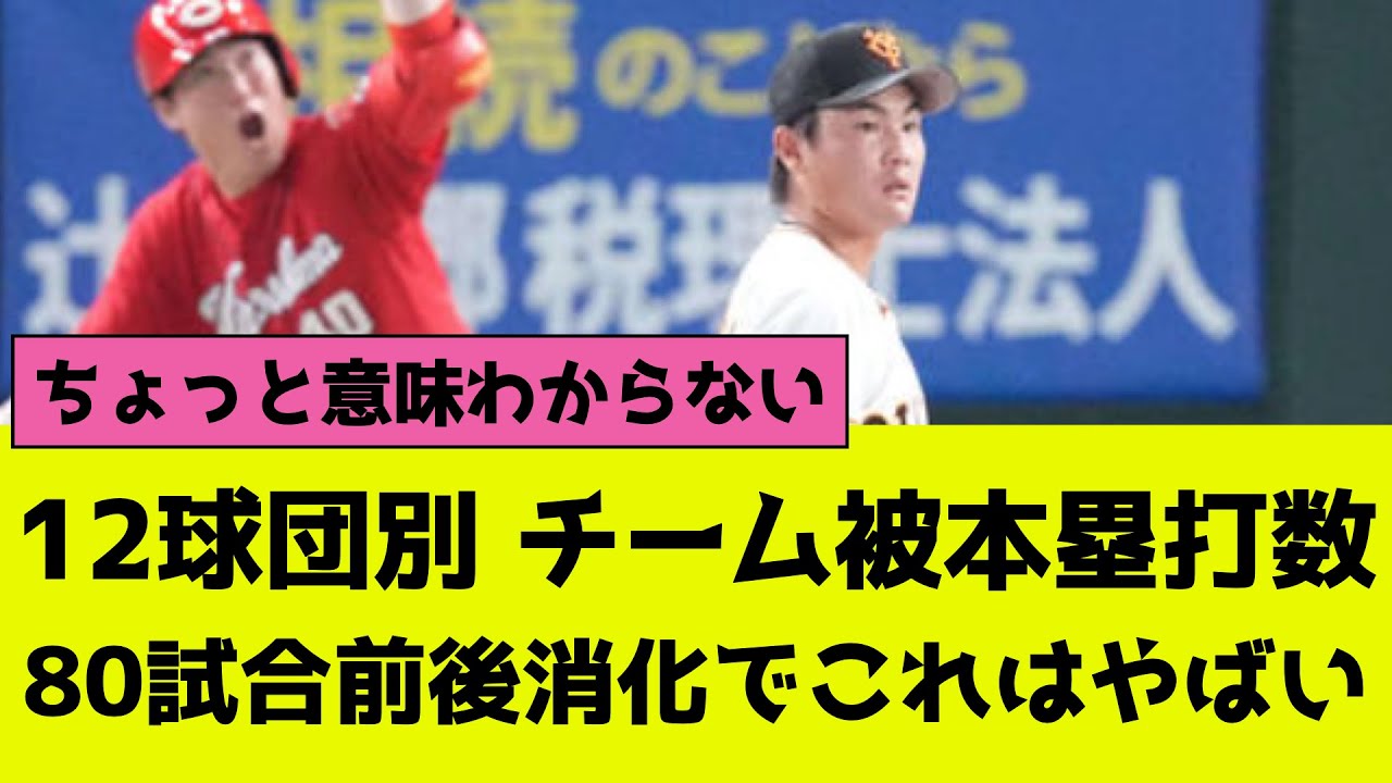 12球団別チーム費本塁打数80試合前 消化でこれはやばい。7月11日終了時点 での12級弾チーム非本塁打数を少ない順 でランキングにしました。10位から発表 していきます。10位東北楽天ゴールデン イーグルスチーム費本塁打数53チーム内 本塁打数上位選手はこちら。 同じく10位東京ヤクルトスワローズ チーム費本塁打数53チーム内本塁打数 上位選手はこちら 9位北海道日本ハムファイターズチーム非 本塁打数52チーム内本塁打数上位選手は こちら 8位横浜DNAベースターズチーム費本塁 打数51チーム内本塁打数上位選手は こちら 6位読み売りジャイアンツチーム費本塁 打数48チーム内費本塁打上位選手は こちら。 同じく6位福岡ソフトバンクホークス チーム費本塁打数48位内本塁打数上位 選手はこちら。 5位埼玉西武ライオンズチーム費本塁打数 44チーム内本塁打数上位選手はこちら。 4位中日ドラモンズチーム費本塁打数41 チーム内本塁打数上位選手はこちら。3位 オリックスバファローズチーム費本塁打数 35チーム内本塁打数上位選手はこちら 2位広島東洋カープチーム費本塁打数34 チーム内本塁打数上位選手はこちら そして1位は阪神タイガースチーム費本塁 打数18チーム内本塁打数上位選手は こちら 再開は千葉ロッテマリーンズチーム費本塁 打数61チーム内本塁打数上位選手はこ こちら ランキング1はこちら。以上です。