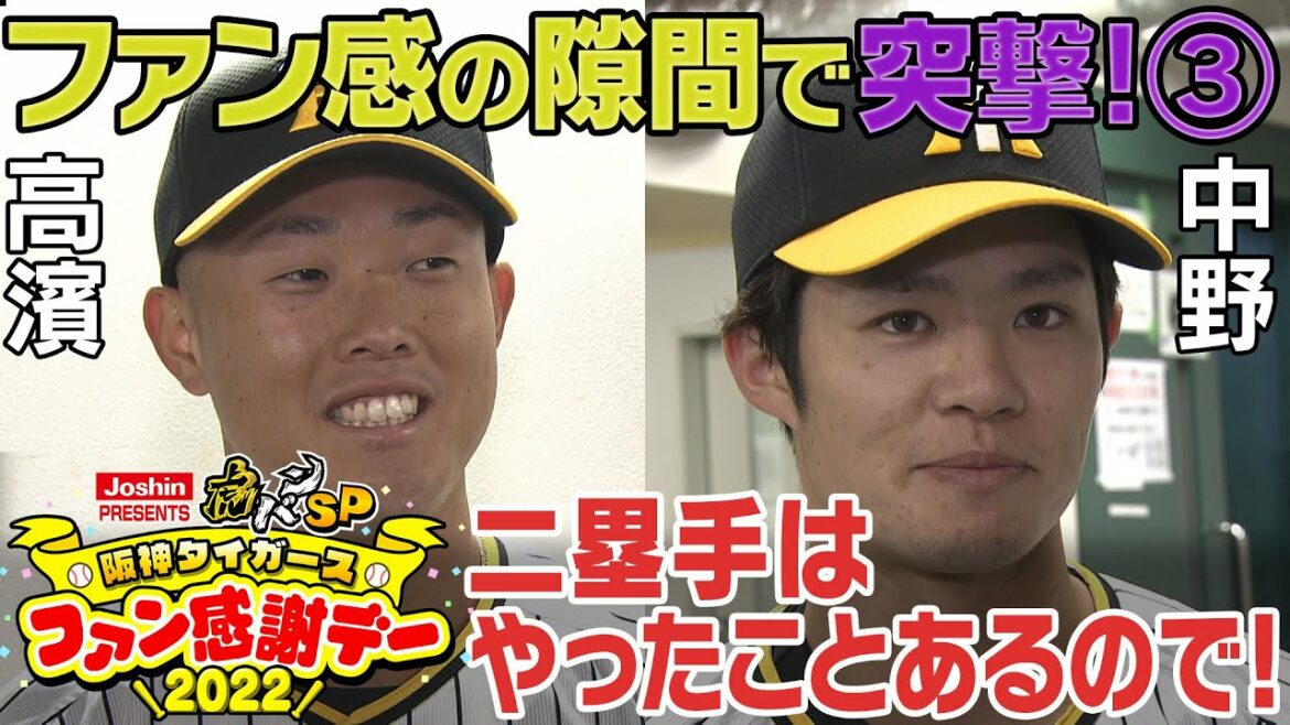 ★阪神ファン感謝デー2022★ ABC朝日放送 2022年12月4日(土) 午後2時30分放送! 2022年11月26日に行われた阪神ファン感謝デーの裏側で、 シーズンを終え来年に向け始動し始めている選手達に突撃インタビュー!! #阪神タイガース #虎バンチャンネル #中野拓夢 #プロ野球ABCHanshin Tigersコンバートセ・リーグセカンドタイガース中野中野拓夢日本ハム朝日放送甲子園虎バン阪神阪神タイガース髙濱 NPBHUB.COM | The Fanbase of Nippon Baseball & Nippon Professional Baseball