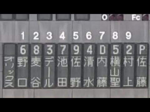 タイガースファンの皆さん、どうもありがとうございます。さあ、それでは続いてはオリックスバファローズのスターティングラインナップの発表です。スバローズファンの皆さん、大きな拍手をお送りください。 [音楽] 次まして高校バロー [音楽] 1 番ショート背番号 9ド智友 2番センター背番号 8杉谷介 [音楽] 3 ファースト背番号125 ジャレッドセール [音楽] 4番レフト 背番号39 池田馬 [音楽] 5番ライト背番号41 [音楽] 6番セカンド背番号 [音楽] 052 [音楽] ムさ [音楽] 7番名田さ [音楽] 25 ナイトお、 8番スタート、背番号 34 横山イヤ [音楽] 9番、キャッチャー、背番号 034 村上京。 バファローズバピッチャーは背番号 [音楽] 93 スタートマ アンタヤーは九坂本塁 1塁森口 3 塁下村大月記録員は平移も持って行われます本日の試合はウエタージークによ [音楽] は行えませんので予かじめご了承をくださいませ。