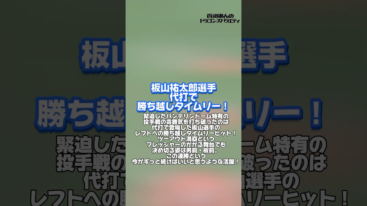 今日のドラパチハイライト。今日の ポジティブポイントはここ。今がずっと 続けばいいと思うわ。まずはこの人山 ゆ太郎選手が代打たで決めた金迫の バンテリンドーム失量の投資戦の中2 アウト満塁の大部大登場した伊山選手が レフトへの勝ち越しタイムヒット。あの 空気感をぶち破る1さすがです。 プレッシャー何それって顔して決めちゃう 姿。もう男前すぎていた前。この連勝の 流れで今がずっと続けばいいと思うわ。 そして先生点を叩き出したのはジェイソン ボスラー選手。バンテリドームでまた見せ た今期7号先生ホームラン。スケットで 守備もこなしてしかもこのペースでホーム ランを重ねてくる選手近年なかなかい なかったよ。バンテリンでの打率は2割 8分7輪と相性ばっちり。ボス様今後とも どうぞよろしくお願いします。そして今日 のラストは藤島県投手松山投手離脱中。 そして清水投手もベンチ街の中9回球場に なり響いたのはアラウンドローの便利屋 から今日はクローザ藤島健と3人で ピシャリとシャットアウト完璧すぎる クローズ。どんな場面でも出を触れるその 柔軟差と信頼感まさに頼れる選手会長です 。 ということで、今日のドラポジポイントここ。熱狂と完成の番テリドームこれずの力。繋がる守り抜くマウンド。