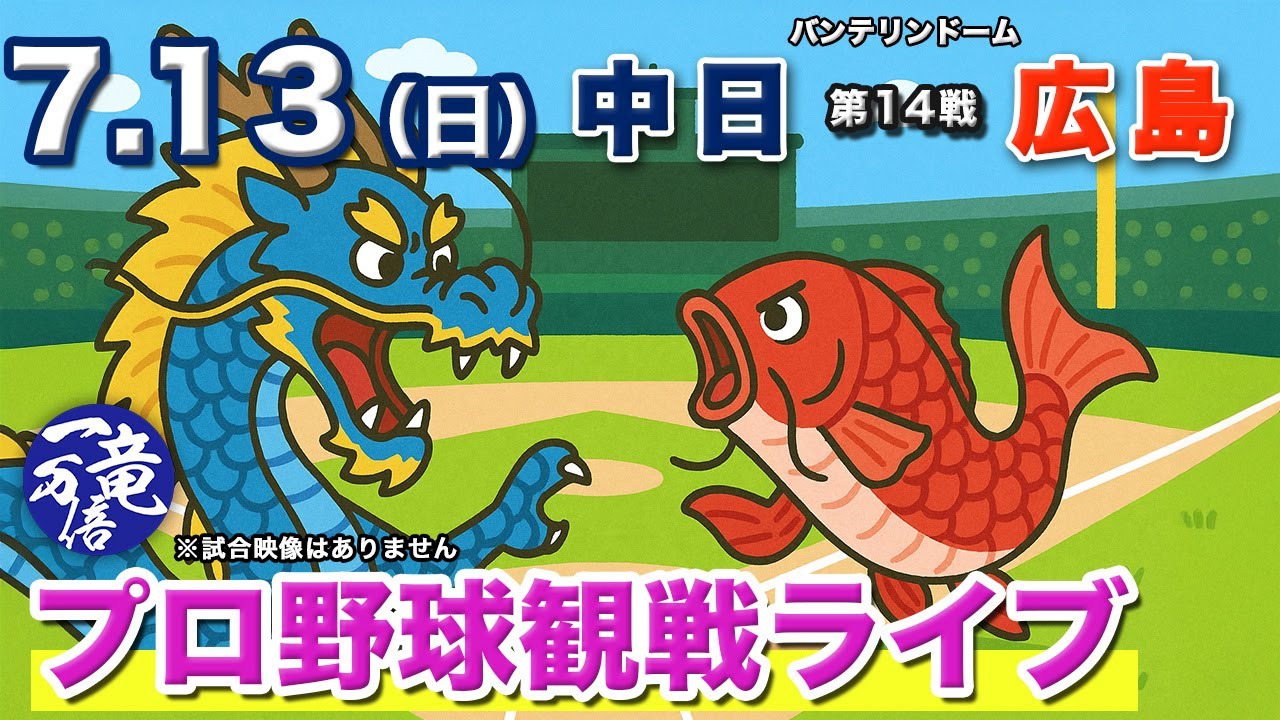 7/13(日)【プロ野球観戦雑談ライブ配信】中日ドラゴンズvs広島東洋カープ 第14戦 バンテリンドーム【ラジオ風生配信】