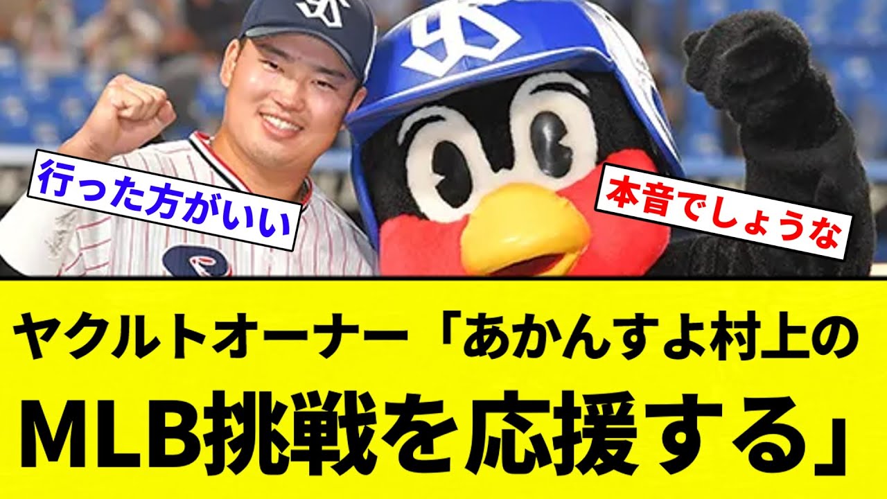 【応援っすよ!】ヤクルトオーナー「村上宗隆のMLB挑戦を応援する。若手もMLBから声がかかる選手になってほしい」【プロ野球反応集】【2chスレ】【なんG】