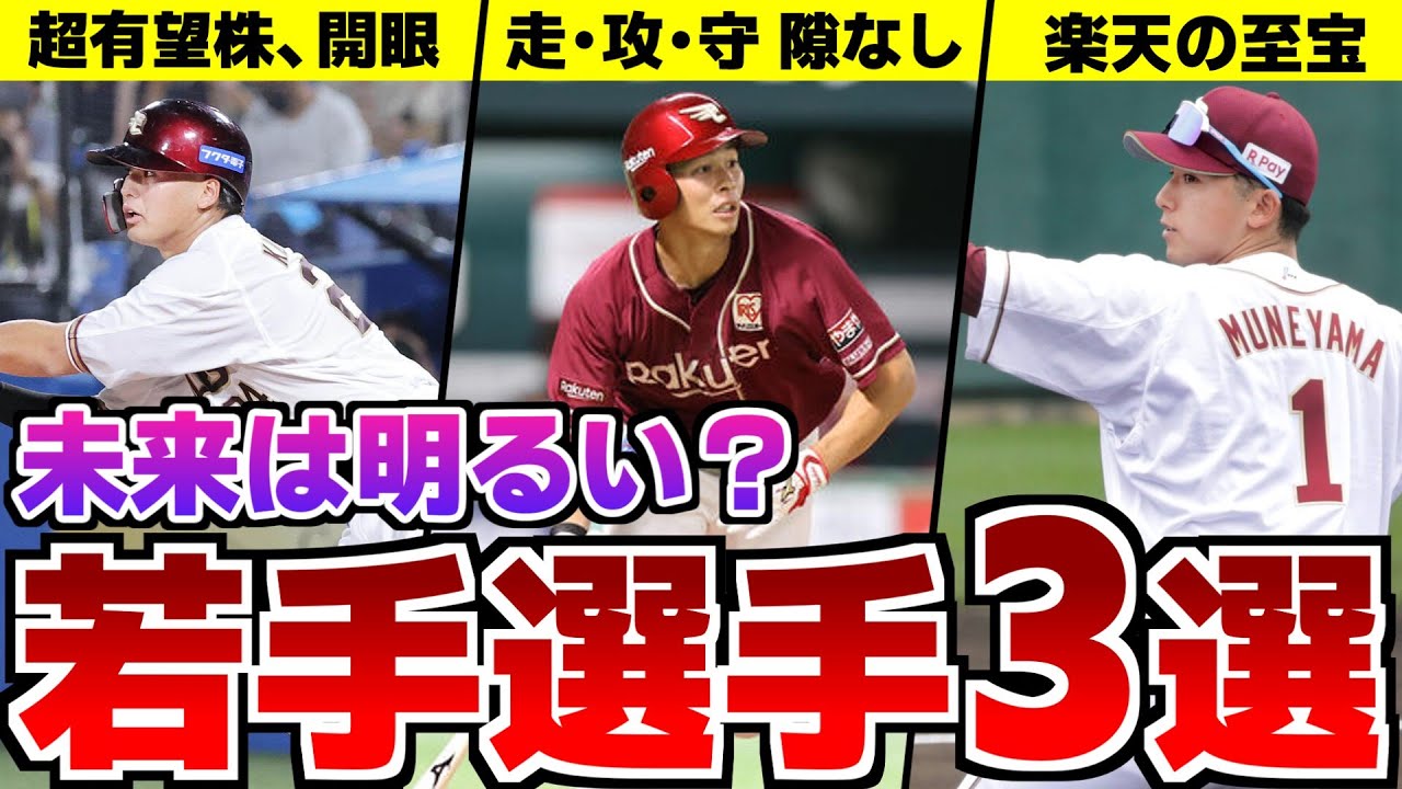 こんにちは。わみです。ここ最近急速に 世代交代が進んでいる間のあるイーグルス ですが、今回は楽天の未来が明るすぎると いうことで現在一軍で活躍中の若手選手3 人を見ていきつつ、第1期以降の妄想を することによって5位という現実から目を 背ける動画です。是非最後までご覧 ください。 ということでまずは高卒年黒川選手から見 ていきましょう。元々楽天随位の融合株で はあったものの昨年までは1分で思うよう な結果を残せていなかった黒川選手なん ですが今年は明らかに今までと違います。 開幕こそ2軍で迎えながらも6月12日に 満を自して1軍昇格を果たすと15日の 阪神戦では12回裏にさよならタイムリー を放つなど昇格直後から打撃面で印象的な 活躍を見せ続け現在も3割超えの打率を キープしつつここまで78打席に立ち WRCグラスは脅威の175を記録する など打撃面で改岸最近は3番の打順に座り チームの主軸として申し分ない活躍を見せ ています。個人的に今年の黒川選手で最も 印象的なのが打席でのアプローチです。 元々バットコントロールには定表のある 黒川選手でしたが、今年は追い込まれて からもしっかりファウルで粘りつつ強引に ならずに逆方向へもアンダを放つシーンは かなり多く見られますし、それに加えて 今年の黒川選手は追い込まれてからも ボール玉を平然と見逃すので当然も増え 現在は三振12に対して6つの子宮を記録 しています。今の調子でしっかりボールを 見極めていけばシーズンが続いても打率 のみならず出塁率も高い数字が期待できる 良いアプローチになっていると思います。 そして黒川選手をかかる上で欠かせないの がこの打撃センスを持ちながらセカンドを 守れるということです。現在は麻村選手が 登録抹勝されたというチーム事情もあって 1塁での出場機会も多くなっていますが、 やはり2夕間を守れる選手というのはそれ だけで貴重ですし、3夕間のレギュラーが 固まっている中でこの黒川選手の対当に よって打撃が低明しているコブ選手を ベンチに置く余裕ができたのもチームに とってはかなりのクラスになっていると 思います。黒川選手は入団当初から期待を かけられていただけに一軍で結果が出ない 時期は1倍辛いものがあったでしょうし、 今期の活躍はまさにマをじしてという感じ で個人的にはかなり出来です。この調子が 続いて来年再来年にはチームのスター選手 と呼ばれるくらい圧倒的な選手に帰りざい て欲しいと思いますね。 [音楽] 続いては2年目の外野手中島大輔選手です 。今回の動画の中で最も結果を出している のがこの中島選手と言ってもいいかもしれ ません。彼の最大の魅力は2年目とは思え ないほどの総行手の揃いっぷりにあります 。まずは守備面ですが、今期の中島選手は 主に欲の守備を担っており、打球判断の良 さに加えて持ち前の総力を存分に生かした ブレーで守備範囲の指標は9回でもトップ クラスの数字を残すなどまさに鉄壁の外野 守備という感じです。った瞬間にはヒット になるかという辺たりでも普通に追いつく シーンの多く守備範囲に関してはデータを 見るまでもなく明らかに別だと分かります 。中島選手の守備力を見ているとあまり 考えたくはないですが辰選手がもしコンフ に移籍したとしてもセンターの穴は簡単に 埋まるのではと思ってしまうほどです。 そして打撃面でも持ち前のパンチ力と総力 を生かし7月前半には4試合連続3塁打の 記録も出すなど純粋なパワーというよりは 足を生かした打撃という感じでダイヤ アンダの数も多いですし馬率長打率ともに 去年に比べると劇的に成長しています。 若干フリースインガー気味なところはあり ますが2年目でOPS6後半を残せている のは素晴らしいと思います。それでいて 盗塁も11位を記録しながら失敗は1位。 総塁指標はいずれも良行と好きがなく、 正直ここまで完成度の高い選手に、しかも これほど早くから育つとは思いませんでし た。現在中鹿島選手は総合指標PWARに おいてパリーグでもトップクラスの2.3 を記録するなどドラフト6位ながら同世代 の野手では頭抜けた存在になっているので はないかと思います。厚見美選手や宇号 選手など楽天の野種は入団から数年を経て 成長するパターンが多いのですでに結果を 残している中島選手は果たして数年後どう なっているのか非常にワクワクします。 [音楽] ということで3人目の胸山選手について見 ていきましょう。10年に1人の逸罪と 歌われ、ドラフト1位で入団した 選手は開幕から聖唱の座に座り、ここまで 73試合出場とほとんどの試合でプレイし ています。この73という数字はルーキー ではダトの数字であり、怪我せず出場を 続ける本人の努力も去ることながら、 首脳人の胸や魔選手に対する大きい期待も 感じられるものです。打撃の数字を見て いくと現状は打率242ホームラン日本、 OPSは596ということで結果の出てい たシーズン序盤に比べるとある程度下がっ てはしまいましたが大体開幕前の北