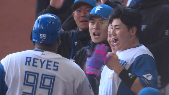 Hokkaido Nippon-Ham (at sentence-end, falling tone) indicates a confident conclusion Kotaro Kiyomiya Player, Reyes. The players fired two consecutive Home Run