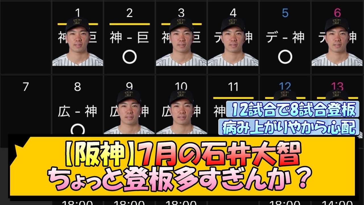 【阪神】7月の石井大智 ちょっと登板多すぎんか?