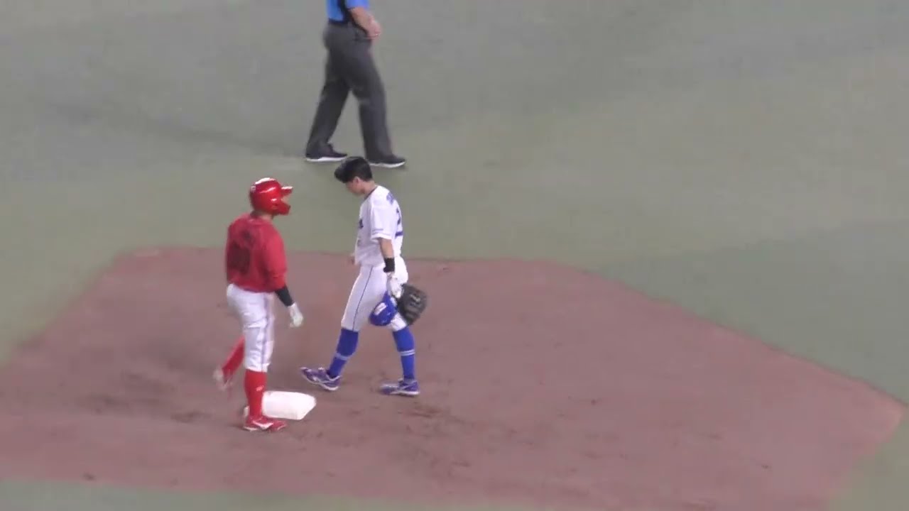 プレー中の負傷の治療から帰ってきた広島羽月に声をかける中日田中&山本 2025年7月13日(日) 中日 – 広島 14回戦