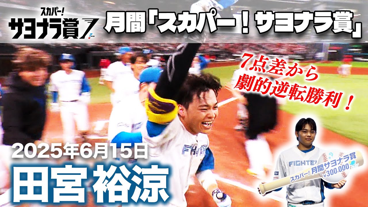 2025年6月度「スカパー!サヨナラ賞」が発表され、パ・リーグは北海道日本ハムファイターズの田宮裕涼選手が選出されました。