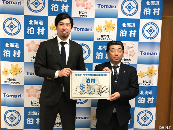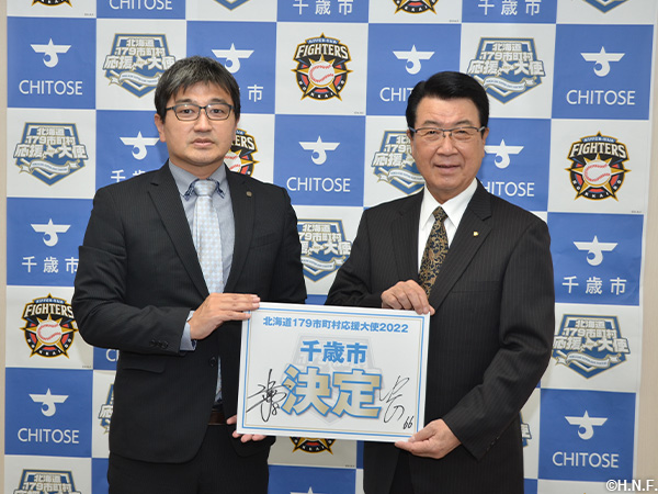 北海道179市町村応援大使 2022年度|北海道日本ハムファイターズ 球団職員が応援大使市町村を表敬訪問 昨年12月に「北海179市町村応援大使」 2022年の就任先である17市町村を北海道日本ハムファイターズのスタッフが表敬訪問いたしました。 当日は、各市町村の首長をはじめ職員の方々に面会し、今後の活動内容についてのご説明をいたしました。 奈井江町 千歳市 小樽市 泊村 室蘭市 豊浦町 知内町 愛別町 帯広市 中札内村 根室市 179市町村fightersHokkaido Nippon-Ham FightersPACIFIC LEAGUEパ・リーグパシフィックリーグファイターズ北海道北海道179市町村応援大使北海道日本ハムファイターズ市町村応援大使日ハム NPBHUB.COM | The Fanbase of Nippon Baseball & Nippon Professional Baseball