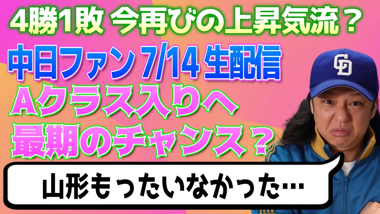 19時より生配信【中日ドラゴンズ週間感想配信】サヨナラサヨナラ【ボスラー・大野雄大・細川】