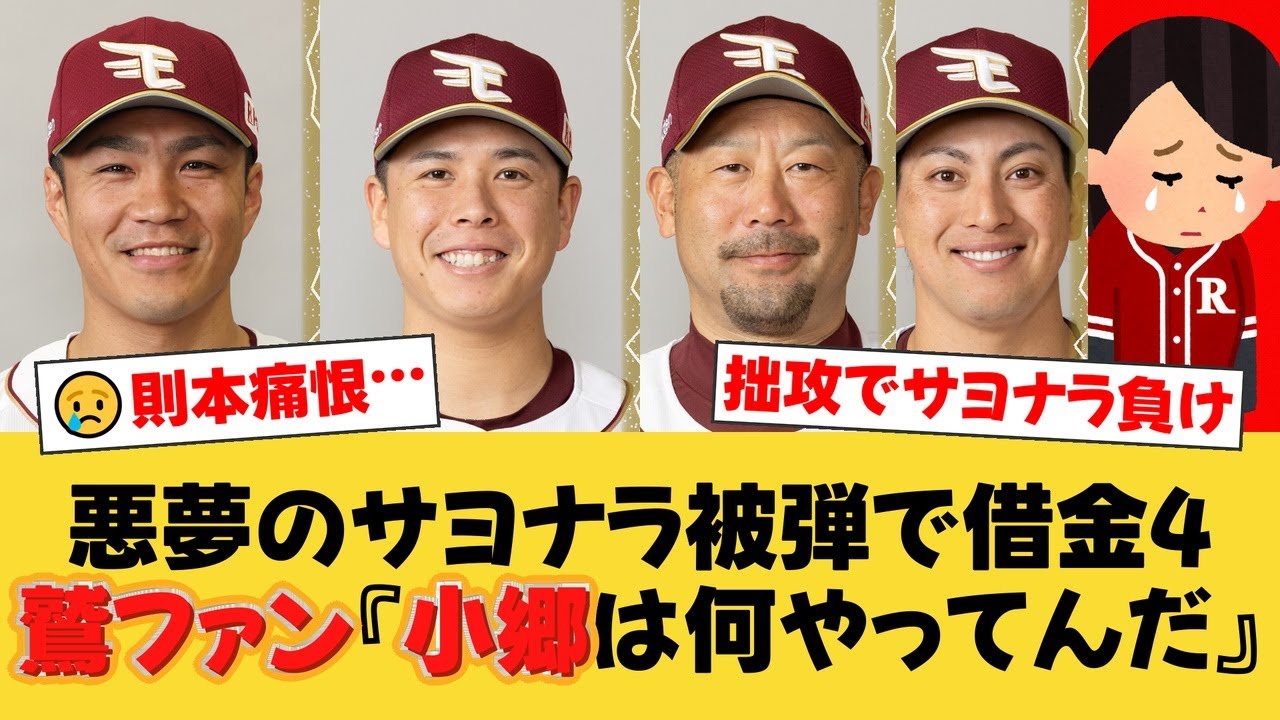 楽天はオリックスに0-1でサヨナラ負けを喫し、今季4度目のサヨナラ負けで借金は4となりました。
