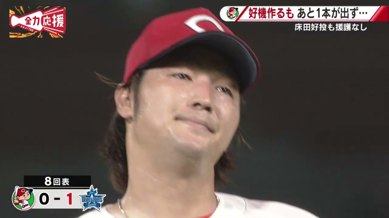 [音楽] 昨日ホームでDNA と対戦したカープ要所での人が足りず 7連敗となっています。 15 試合連続3 得点以下とに元気がないカープ。まずチャンスは 3 回に訪れます。日曜の中日戦でモ打賞のモンテロ 3塁戦2 ベースで先制のチャンスを作ります。 しかしこのピッチャーゴールでモンテロが 飛び出してしまい考察プレイに総塁ミスで この回無得点に終わります。先発の田は7 回までベースターズ打線を無得点に抑えて いましたが、 桑原に低めのボールをレフトスタンドへ 運ばれ、通コンの出点。重い1点がスコア ボードに刻まります。 ファーストレーナー なんとか反撃したい打線はその裏 ヒットで出た末の第 4 大森塁に成功し同点のチャンスを作ります。 [拍手] その後2アウト満塁としバッターは 菊しかし [音楽] 打ち上げてしまいセカンドフライホームが 遠いカープ 9回には連打で再びチャンスを作ると2 ベースを放っているモンテロ フルカウントからの8球目。 しかし空振り三振。 カープ今シーズンワーストタイの 7連敗です。 試合終 はい。5位とのゲーム差 0.5 に迫ってしまいましたが、新井監督は試合後の段話で 1戦1 戦という質問に対してもちろんまた明日と前を向いていました吉中さん。 いや、やっぱり選手がね、一番あのしんどいと思うんですけれども、あの、前向いていってほしいですし、ま、こういう時そが真のファンだと思います。 そうですね。今夜こそ負の連鎖を止めていただきましょう。 今夜の先発です。スカープが大投手、 [音楽] DNA がバウバー投手となっています。ここまでカープについてお伝えしました。 [音楽] [拍手] [音楽]