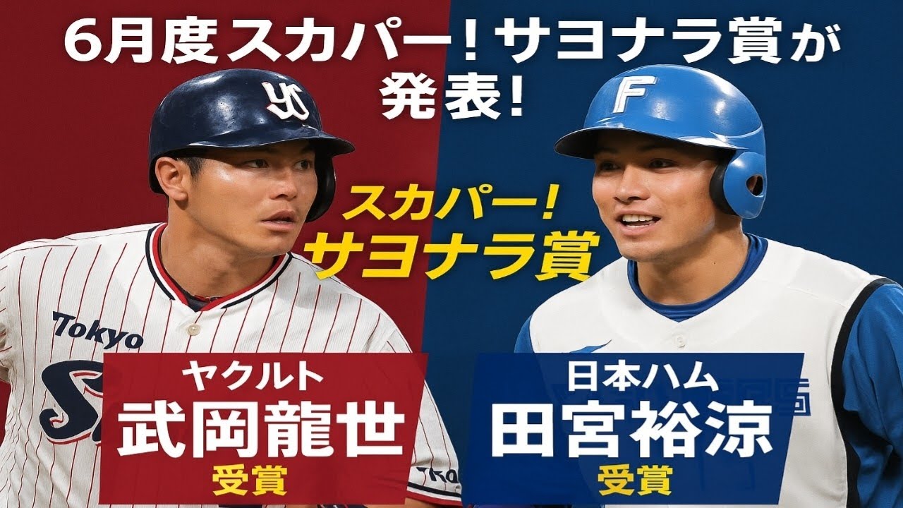 #スカパーサヨナラ賞 #サヨナラ賞 #武岡龍世 #田宮裕涼 #東京ヤクルトスワローズ #ヤクルト #北海道日本ハムファイターズ #日本ハム #プロ野球 #NPB #野球好きな人と繋がりたい #野球ファン #野球ニュース #サヨナラヒット #ヒーローインタビュー #プロ野球応援 #プロ野球2025 #感動の瞬間 #月間MVP #スカパー #JuneSayonaraAward #SayonaraHit #RyuseiTakeoka #YusukeTamiya #YakultSwallows #Fighters #NipponHamFighters #JapaneseBaseball #NPBAwards #BaseballJapan #WalkOffHit #ProBaseballStars #ClutchPlayer