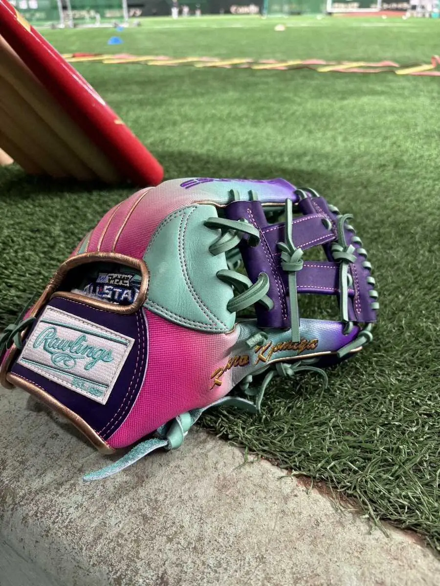 華やかな舞台にふさわしい。3年ぶりに球宴出場する清宮幸の元に、色鮮やかな特別仕様のグラブが届いた。紫、ミントグリーン、ピンクがあしらわれたローリングス社製の三塁手用グラブ。手のひら部分には「オールスター」のロゴが刺しゅうされており、手にすると「奇抜でめっちゃ格好良くないですか?」と満面の笑みを浮かべた。
