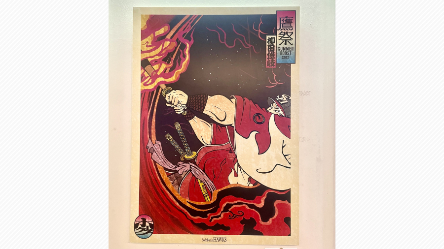 2年目の今年は、「音楽」や「お笑い」といったエンターテイメントに加え、新たに「アート」にも着目。日本の伝統文化である“浮世絵”の表現力とホークスらしさを融合させたアートを制作し展示しています。