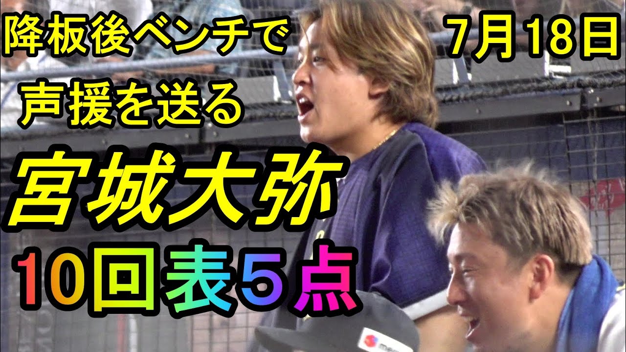 オリックス宮城大弥、降板後ベンチで応援、10回表一挙5点2025.7.18