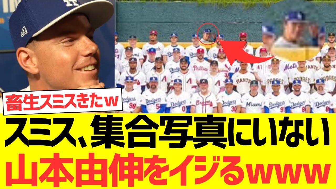 ミルスニスは日本時間7月17日最後の 写真よしはどこというコメントと共に複数 のオールスター関連写真を投稿。投稿の 最後には選手たちが並ぶ集合写真が掲載さ れていたがそこに実際には映っていない 山本の姿が加工で追加されていた。実は この合成尻は大谷翔平が自身の Instagramで先に披露しており、 それにデルスミスも続いた形になった。 山本が集合写真に間に合わなかった背景に は試合前に1度宿舎に戻っている間に チームと撮影時刻が大幅前子になり間合わ ずホテル出るぐらいの時に予定が変わって 失礼しましたと話していた。今回の集合 写真騒動がマウンド上の冷静な姿とは対象 的にチームメイトたちからいじられる愛さ れキャラとしての一面も買いまみせた。 吉信みんなのおもちゃやん。あの真面目 スミスがこんなことするんだな。こっちの 方が思いやりガール加工。写真も可愛いの 選んでくれてる。吉信空集合写真にいなく て大谷翔平とスミスにいじり倒されてて草 。ついにスミスにもいじられる吉信おもろ すぎる。スミスの編集したんじゃないよな 。スミスがやったんだとしたら編集力すご すぎる。スミスさん、もうちょい老眼に 優しい方法のいじりをなす。スミスの 吉信席の集合写真はかなりクオリティ高い 。これが公式でいいのでは?大谷の ストーリー見た時も笑ったけど、スミス まで追い打ちでいじってくるとは思わ なかった。こういうチームの空気感ファン としてはすごく嬉しい。いいぞ、もっと やれ。いじってくれる先輩たちがいるのっ てすごくいいよね。ドジャースの選手たち がこうやってSNSで吉のをいじって くれるのを見ると馴染めてるんだなって 安心するよ。集合写真にいなかっただけで ここまでいじられる山本がもう完全に いじられキャラになってるのが面白すぎる 。いじり方も優しくていい先輩たちに めくまれてるな。吉信が集合写真に映れ なかったのは残念だけど、そのミスを笑い に変えてくれる大谷安ミスって最高。ご 視聴いただきありがとうございます。 チャンネル登録、高評価よろしくお願いし ます。