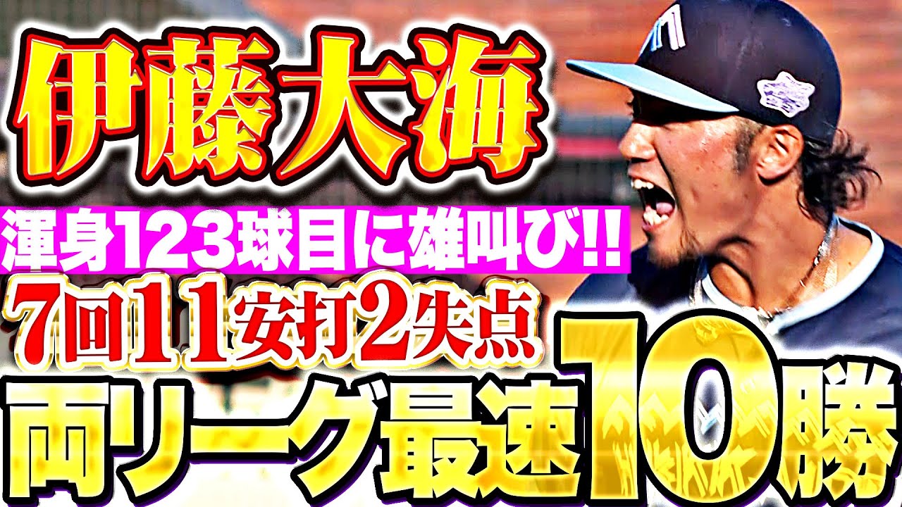 【両リーグ最速10勝目】伊藤大海『毎回走者を背負うも…7回123球11安打2失点で今季10勝目!』
