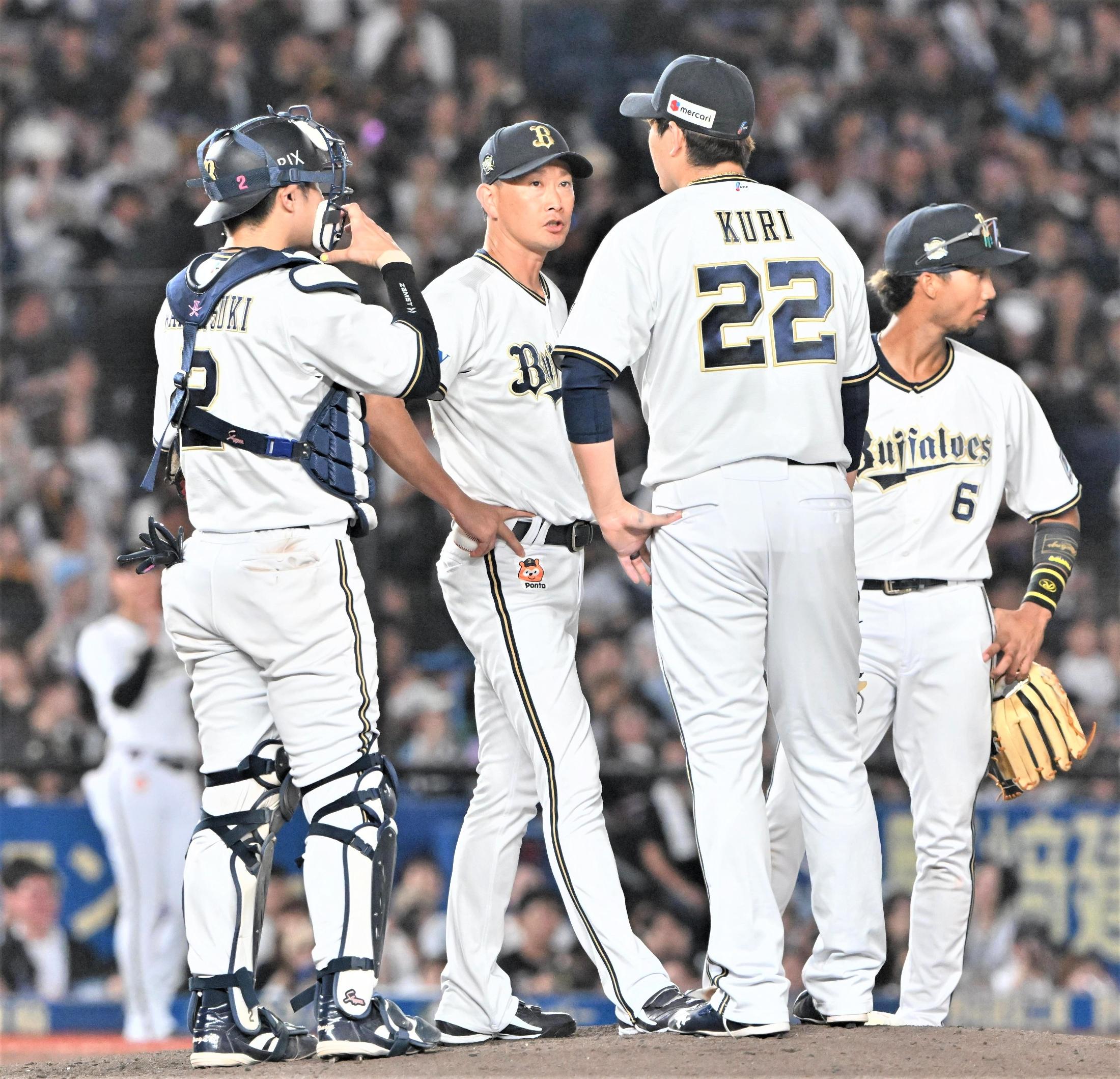 九里は4回を三者凡退に抑えるも、5回に1死から7番・上田にライトへの二塁打を浴び、8番・宮崎の一ゴロ間に2死ながら三塁へ走者を進められる。続く9番・小川は追い込みながらも右前適時打を許し0-1。さらに藤原にはショートへの内野安打、寺地、安田に連続適時打を浴び2死から4連打で0-3。